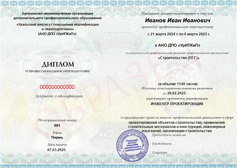 - Профессиональная переподготовка в сфере строительства (ПГС) с выдачей диплома.