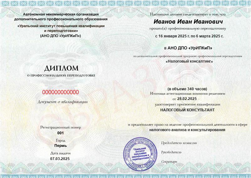 Да, дипломы и удостоверения оформляются в соответствии с действующим законодательством РФ. Документы печатаются на специальных бланках, заверяются печатью АНО ДПО «УрИПКиП».