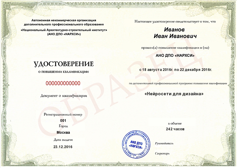 - Образец удостоверения о повышении квалификации.