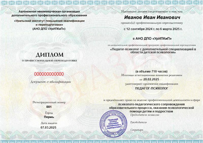 Курс обучения Педагог-психолог с дополнительной специализацией в области детской психологии (710ч)