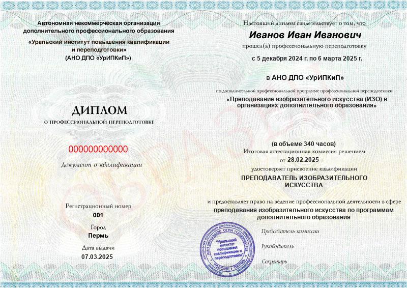 - Образец диплома о профессиональной переподготовке.