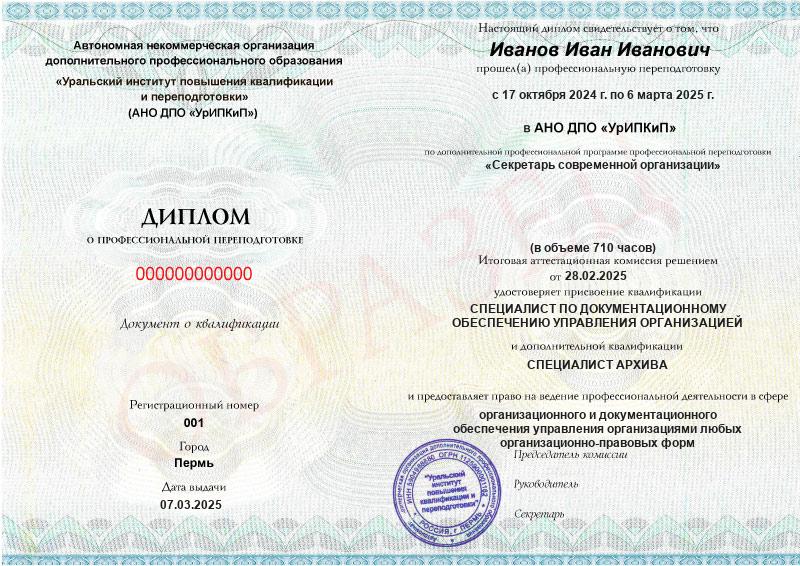 Да, дипломы и удостоверения оформляются в соответствии с действующим законодательством РФ. Документы печатаются на специальных бланках, заверяются печатью АНО ДПО «УрИПКиП».
