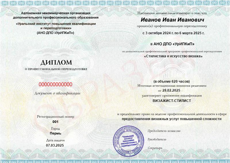 - Образец диплома о профессиональной переподготовке.