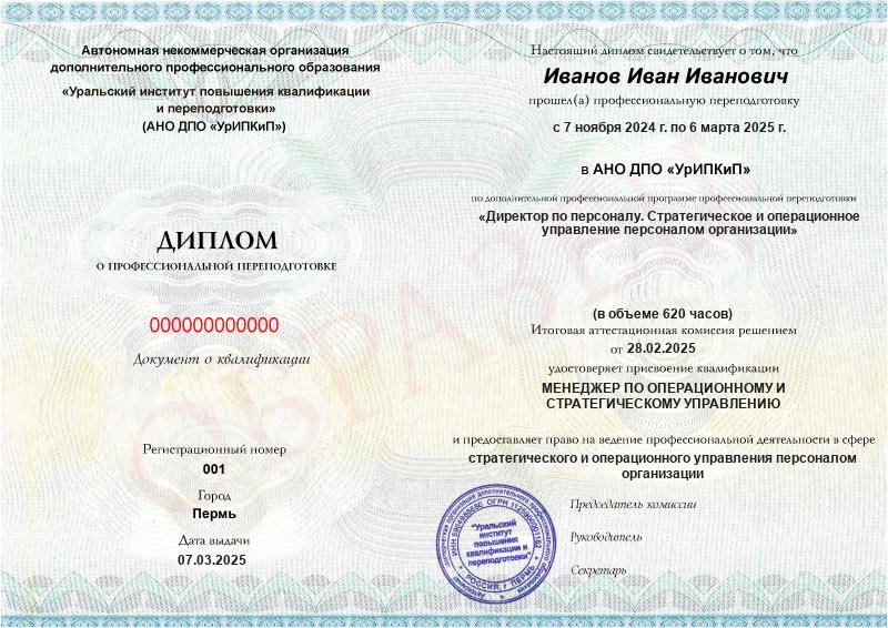 Курс обучения Директор по персоналу. Стратегическое и операционное управление персоналом организации (620ч)