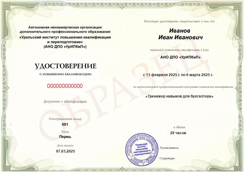 Заполненные образцы выдаваемых документов есть в описании учебных курсов и на странице «Лицензия. Документы», а также на главной странице официального сайта АНО ДПО «УрИПКиП».