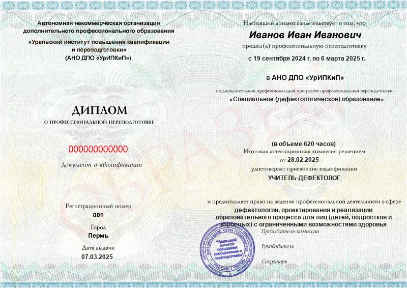 Да, дипломы и удостоверения оформляются в соответствии с действующим законодательством РФ. Документы печатаются на специальных бланках, заверяются печатью АНО ДПО «УрИПКиП».