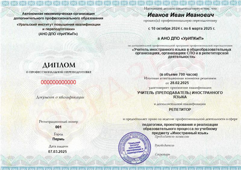 Курс обучения Учитель иностранного языка в общеобразовательных организациях, организациях СПО и в репетиторской деятельности (700ч)