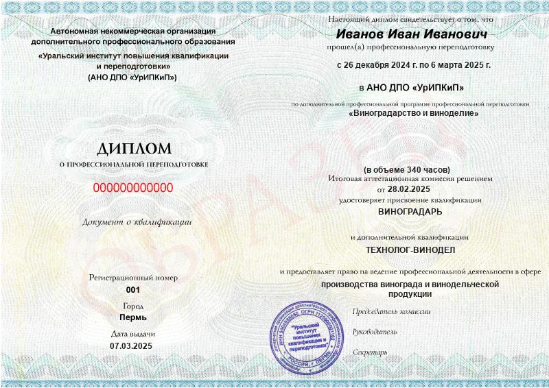 Да, дипломы и удостоверения оформляются в соответствии с действующим законодательством РФ. Документы печатаются на специальных бланках, заверяются печатью АНО ДПО «УрИПКиП».